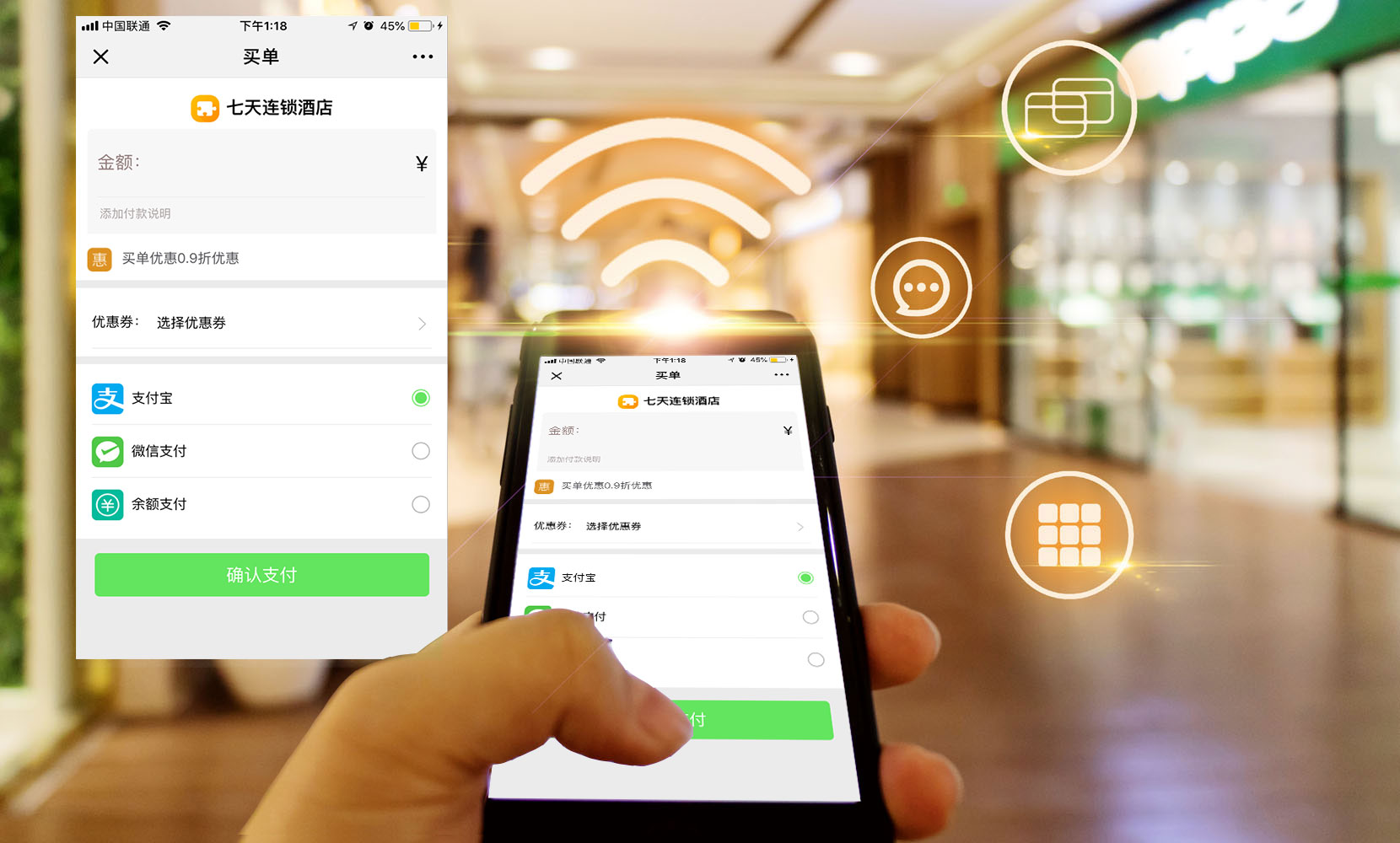 第三步,确认支付,在这里支持微信支付和支付宝。支付成功后会有页面提示,出示订单号码给到商家以便于商家核实订单。