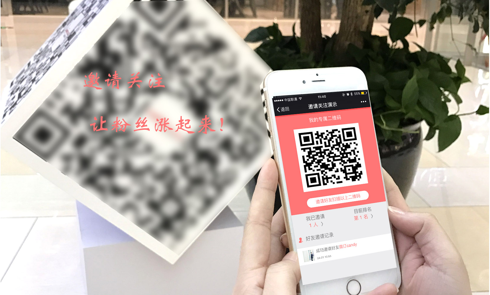 2.用户关注之后,可统计到该推广人的邀请次数,自动生成排名,邀请人越多排名越前。