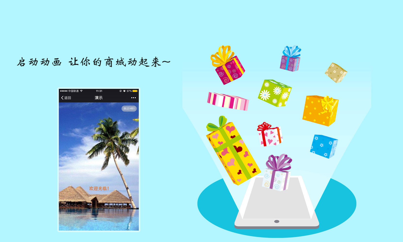 类似App启动效果,自定义封面和跳转时间、链接。